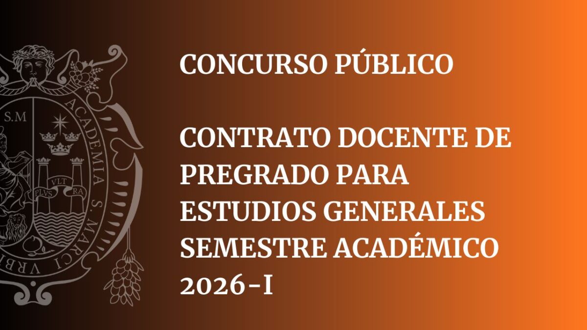 13 de marzo de 2026CONCURSO PARA LA CONTRATACION DOCENTE DE PREGRADO EN LA MODALIDAD PRESENCIAL (ESTUDIOS GENERALES), correspondiente al Semestre Académico 2026-I,