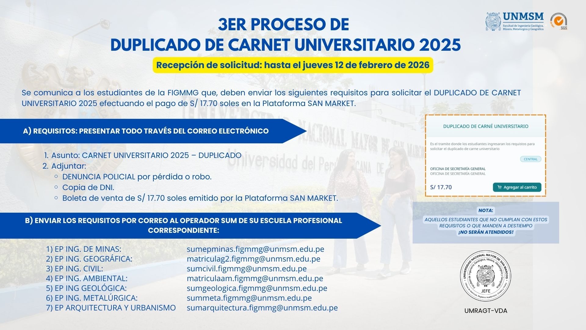 Correo electrónico: matriculaam.figmmg@unmsm.edu.pe